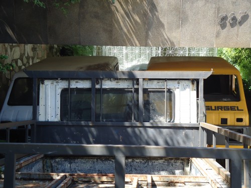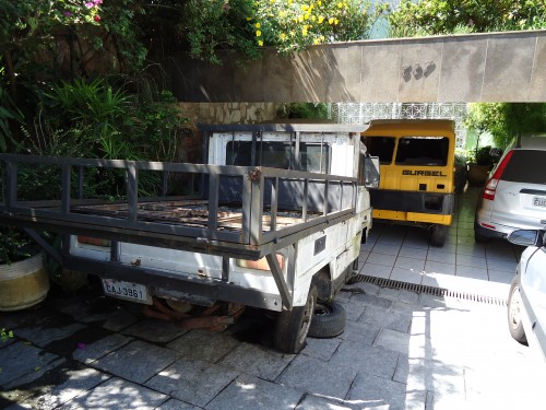 Foi o único que restou no terreno, ao lado de um Chevrolet Omega e de uma Chrysler Caravan. Indo embora, porém, o que vejo na casa vizinha?