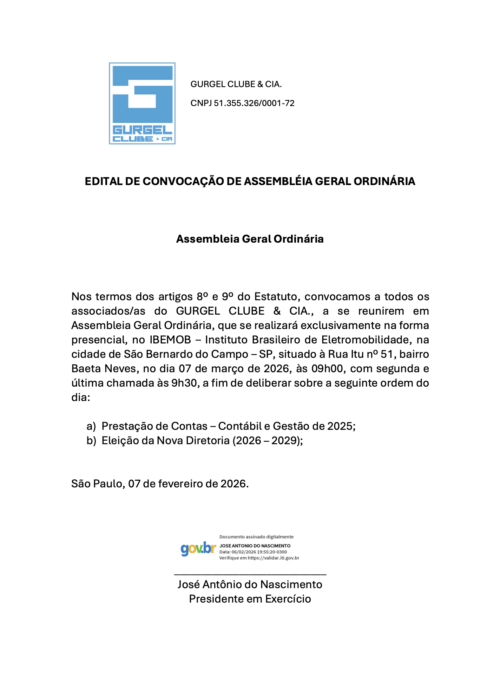 06 fev Edital de Convocação de Assembleia Geral Ordinária Posted at 21:44h in Avisos by Gestão 0 Comments 0 Likes Share