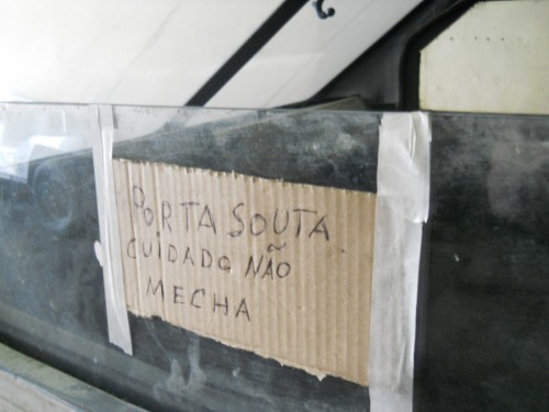 Detalhe para o aviso na porta: