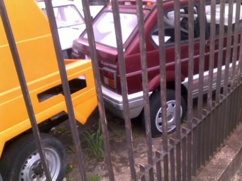 Nas fotos notamos a presença de um Supermini vinho logo na entrada, um X-15 Jipão TR amarelo (provavelmente recém-pintado, pelo estado da pintura e falta de vidros) e outro X-15 Jipão TR branco e um X-12 TR, também branco e com faixas verdes claras. Por que tantos e por que largados assim?