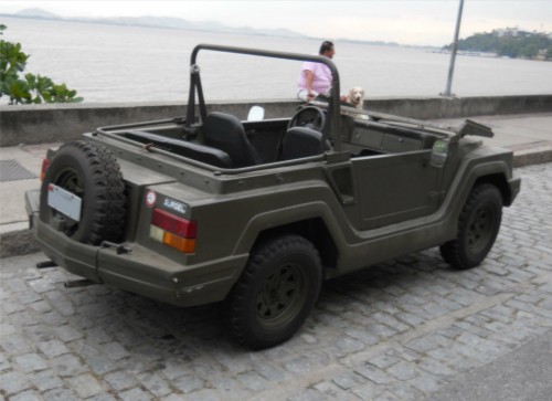 O dono leva o seu cão para passear só de Gurgel (notem o banco do carona).